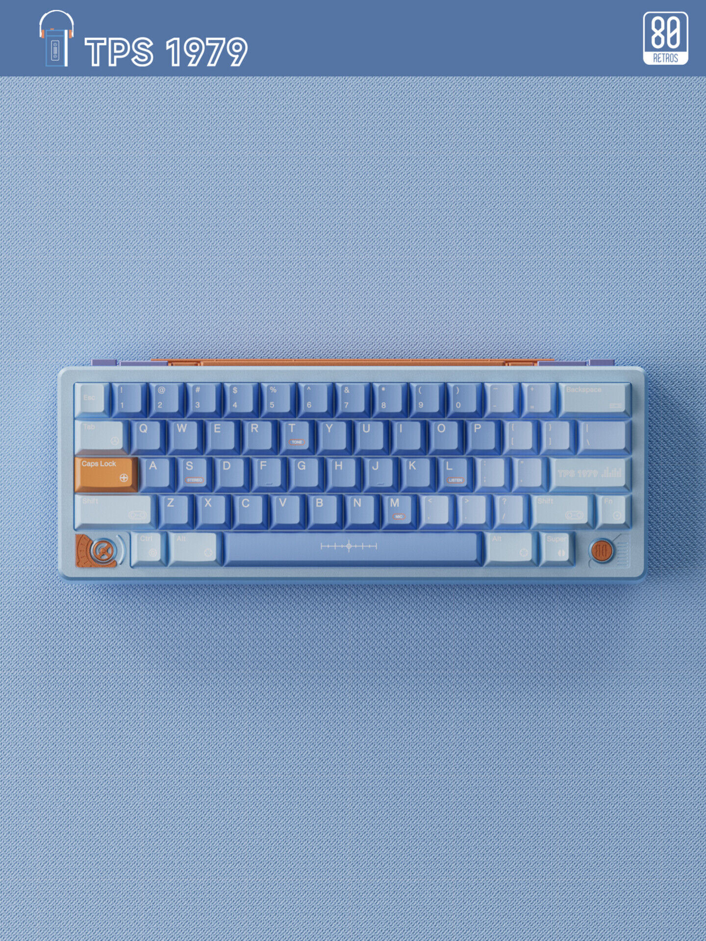 Bộ keycap 80Retros TPS 1979 là lời tri ân dành cho chiếc Walkman TPS-L2 đời đầu của Sony—một biểu tượng của văn hóa hoài cổ. Keycap được phối màu từ chính chiếc máy này, với các tone xanh lam, trắng xám và cam nhấn nhá, mang đến phong cách cổ điển mà vẫn cực kỳ hiện đại. Đặc biệt, bộ keycap còn sử dụng mực bạc để mô phỏng logo kim loại của Walkman, cùng một số keycap bán trong suốt độc đáo, biến chiếc bàn phím của bạn thành một "cỗ máy ký ức" đầy cuốn hút.