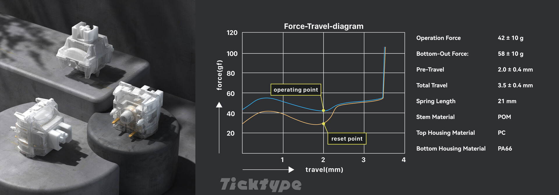 Ticktype là thương hiệu kế thừa tinh hoa từ các "tên tuổi" trong lĩnh vực bàn phím custom như Owlab, Neo và Qwertykeys. Với mục tiêu mang chất lượng custom lên dòng pre-built (lắp ráp sẵn), đảm bảo chất lượng và trải nghiệm gõ tuyệt vời.