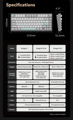 - Bridge75 HE: 1.6mm non-flex cut, Hotswap, Kết nối dây 8Khz poll rate, Không LED, phần mềm keymap hãng
