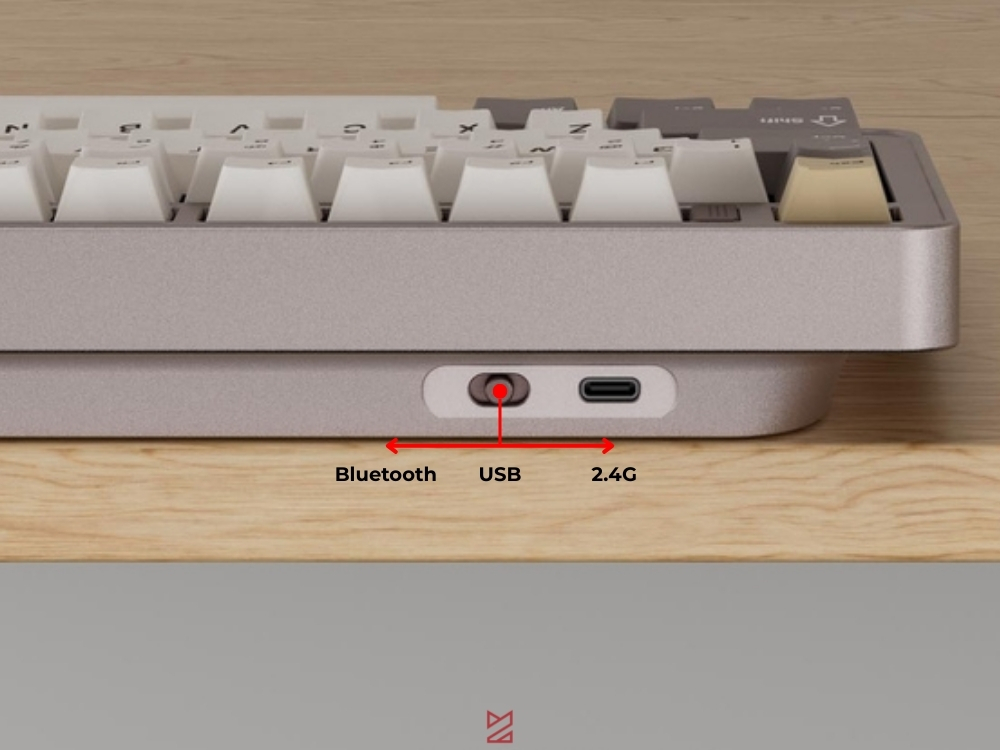 • Gạt công tắc ở cạnh sau của phím về đúng chế độ kết nối dây (vị trí giữa), khi đèn ~ sẽ sáng 2s sau đó đèn sẽ chuyển về bình thường. Vậy là bạn đã chuyển về chế độ kết nối dây