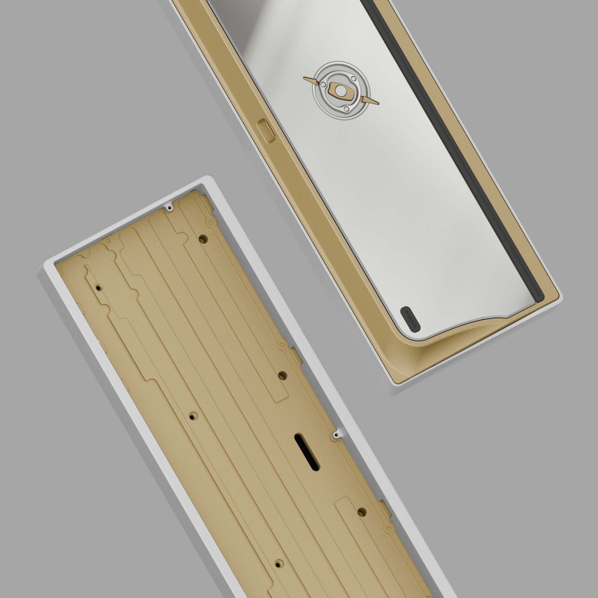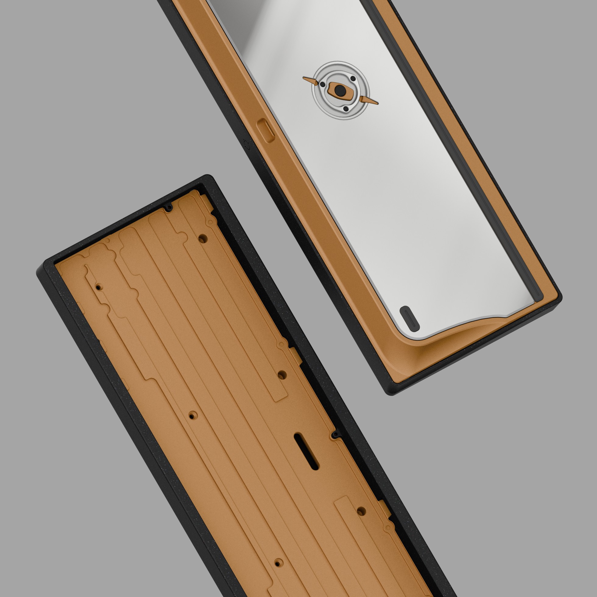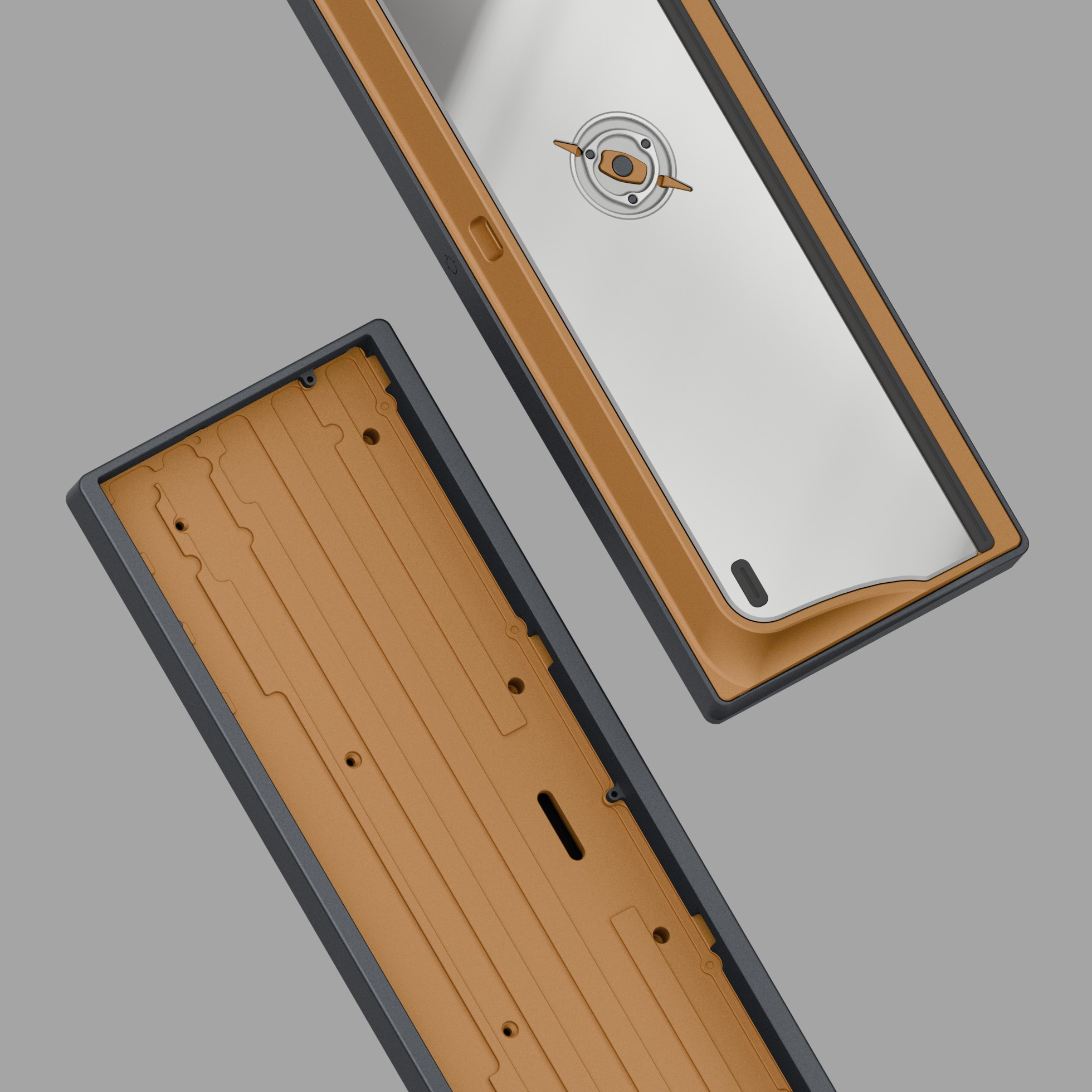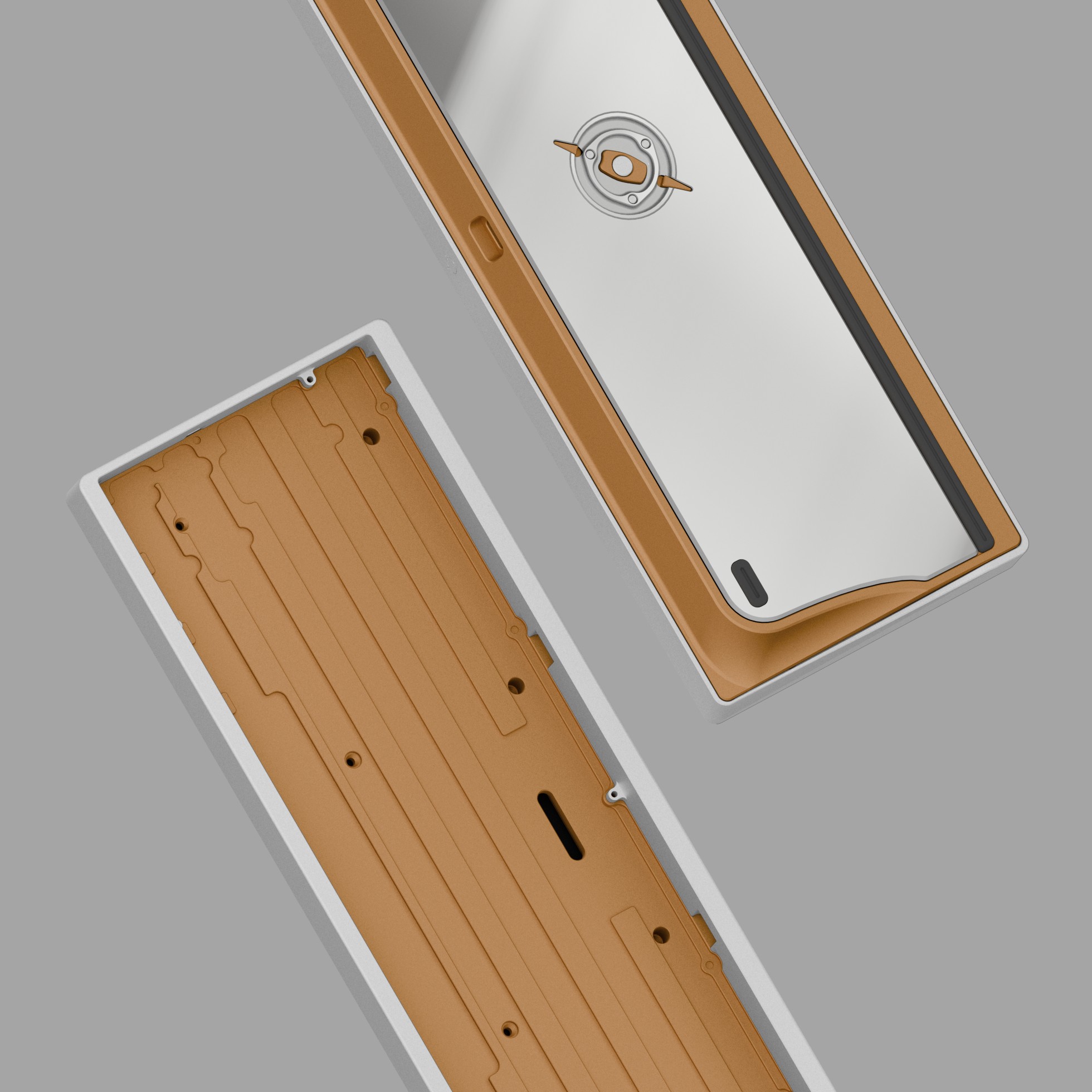 Để giảm thiểu hiện tượng âm thanh rỗng và vang, một khoang âm đặc biệt đã được thiết kế cho cả Neo65 Cu và Neo60 Cu. Vỏ đáy có các đường cắt được bố trí hợp lý, giúp lấp đầy tối đa khoảng trống giữa PCB và bottom case, đồng thời vẫn đảm bảo đủ không gian cho PCB di chuyển khi gõ. Thiết kế này kết hợp với đặc tính vật liệu của đồng giúp giảm đáng kể âm thanh rỗng mà không cần sử dụng thêm các lớp foam tiêu âm.