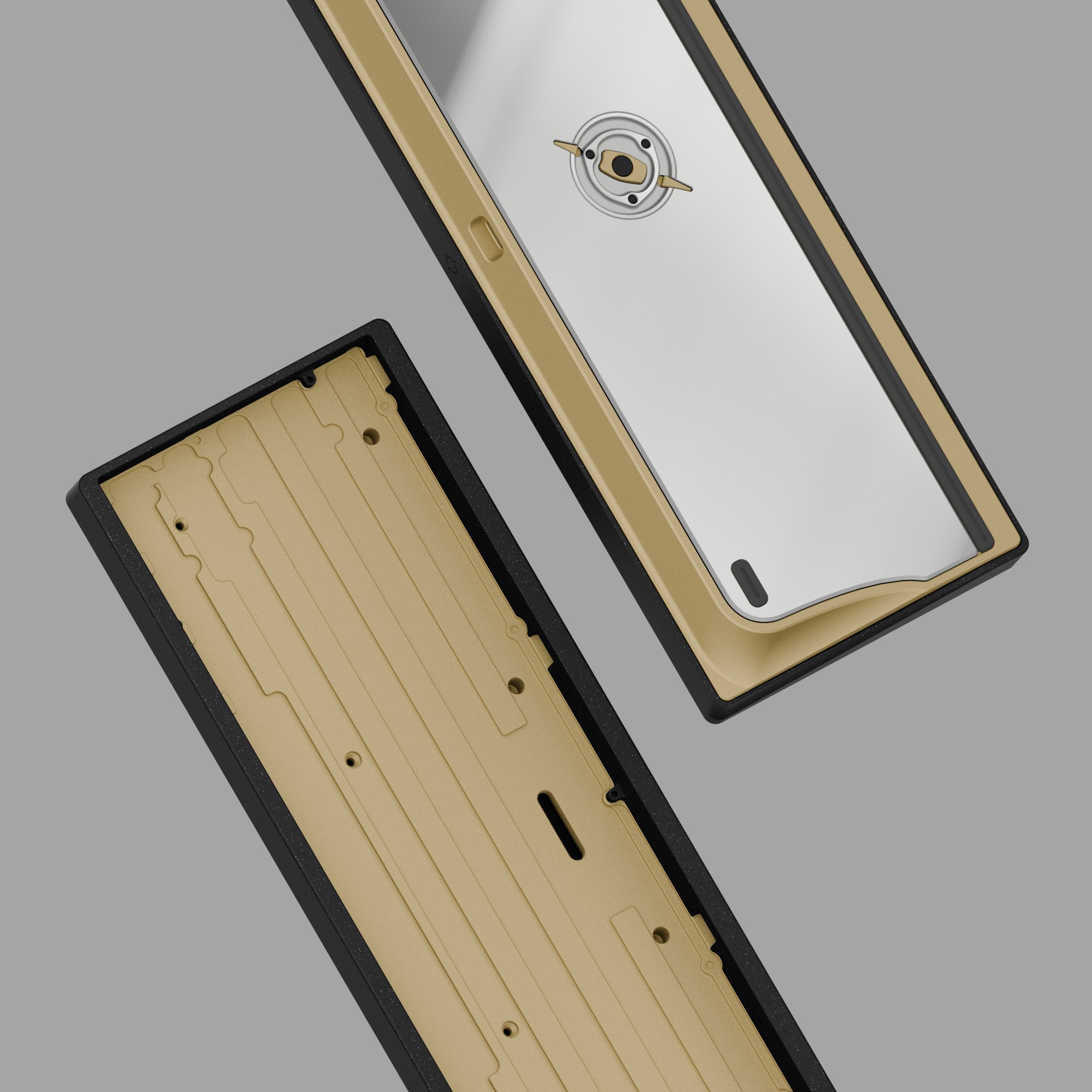 Side profile của bàn phím được thiết kế đa lớp, kết hợp hài hòa với phần đáy đồng để làm nổi bật ngôn ngữ thiết kế của dòng Cu. Bottom case được bo cong giúp giảm bớt cảm giác nặng nề của chất liệu đồng, giúp mặt trước trông mỏng và thanh thoát hơn.
