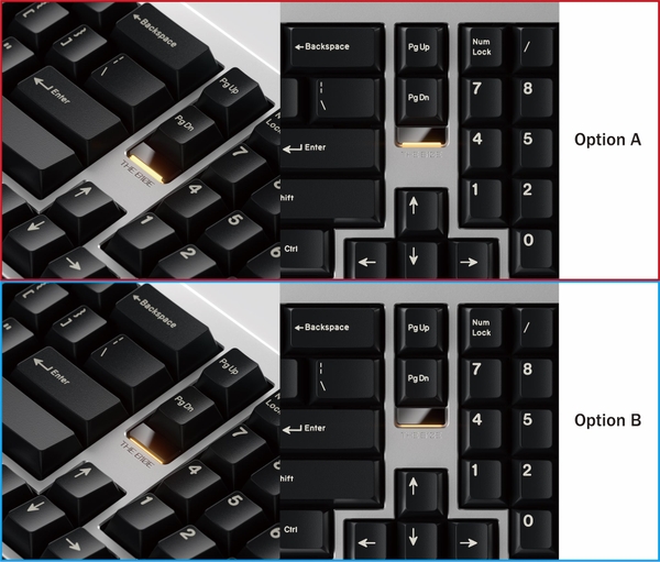 - Option B: Phần tản led sẽ dịu hơn, hướng sang hai bên, từ vị trí ngồi gõ phím sẽ thấy không nổi bật bằng option A nhưng sẽ giảm sự sao nhãng từ các đèn LED