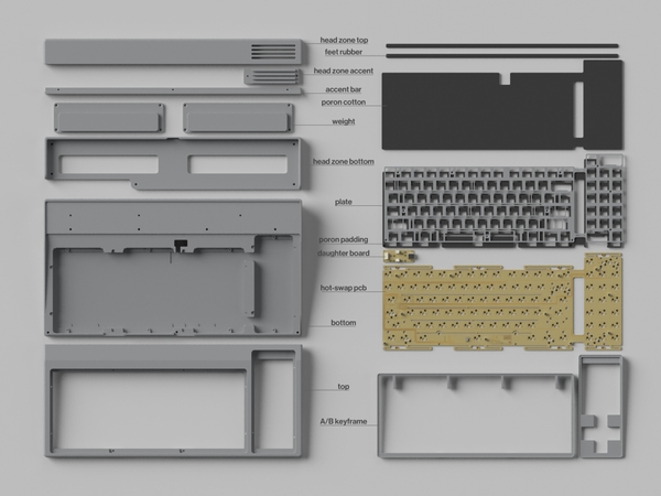 - Hotswap PCB (kèm plate + poron ) hoặc Solder PCB (kèm assistant plate)