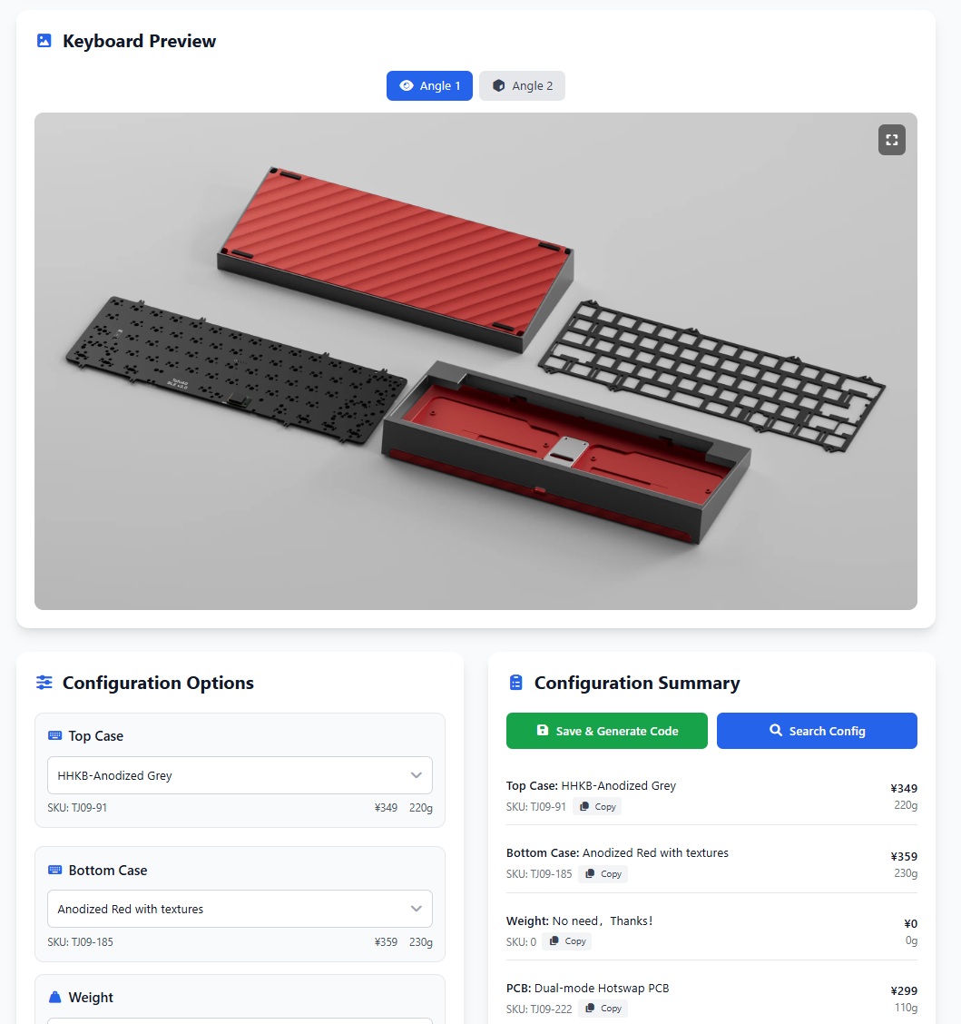 Sau khi chọn đầy đủ bạn sẽ thấy hình ảnh phối màu, trọng lượng phím (Giá chỉ có tính chất tham khảo)