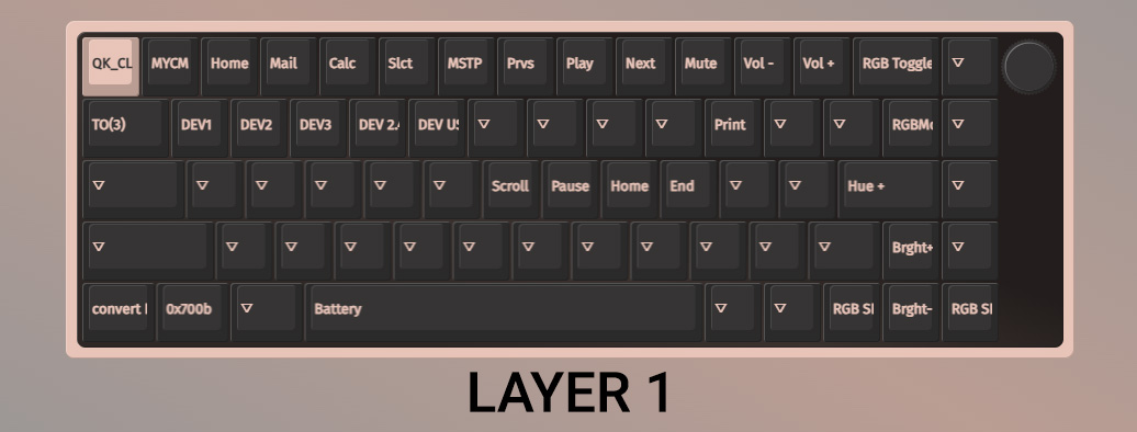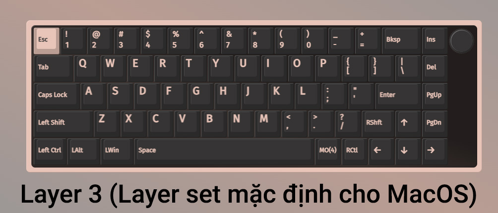 Khi ấn giữ Fn + Tab bạn sẽ chuyển sang layer 3 (layout được set sẵn dành cho MacOS)