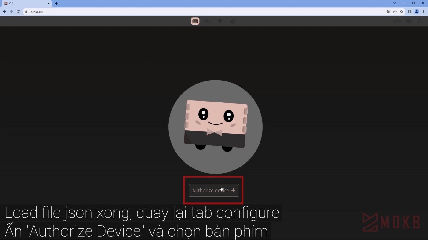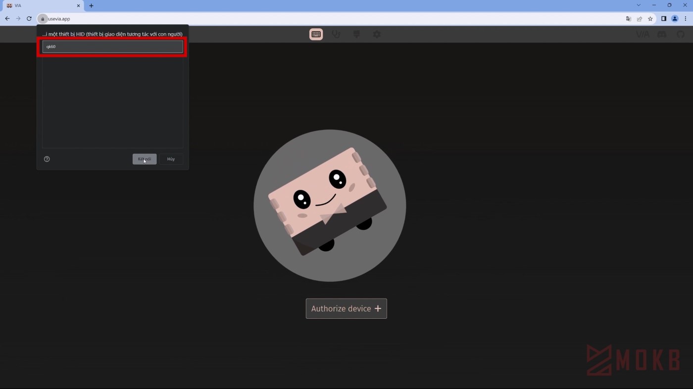 Bước 7: Ấn nút Authorize Device và chọn bàn phím muốn keymap