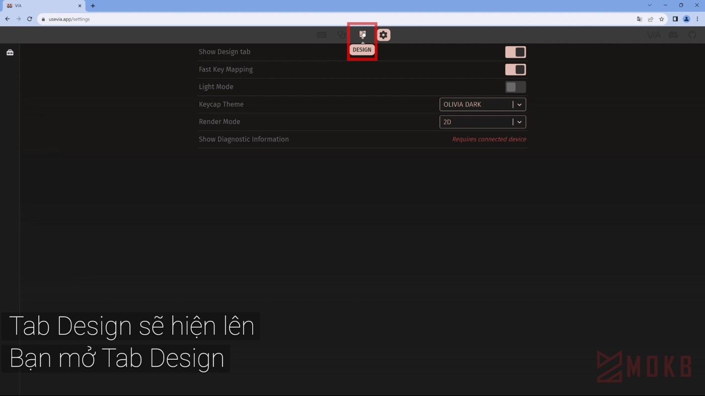 Bước 3: Trong Tab Setting, bật "Show Design Tab"