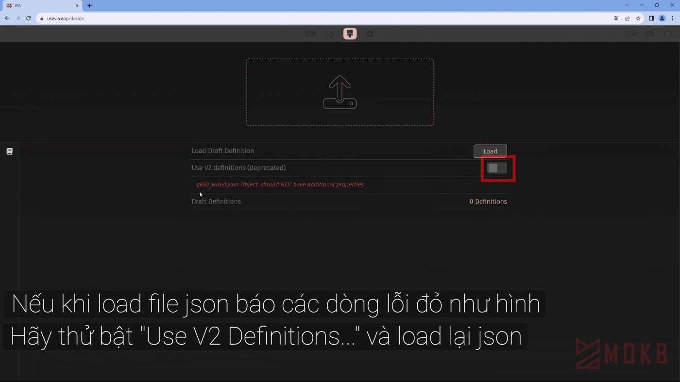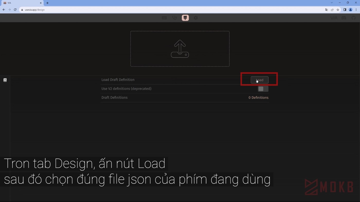 - Các bạn có thể tải file json và firmware các phím do MOKB Store bán tại đường dẫn: https://mokbstore.com/download