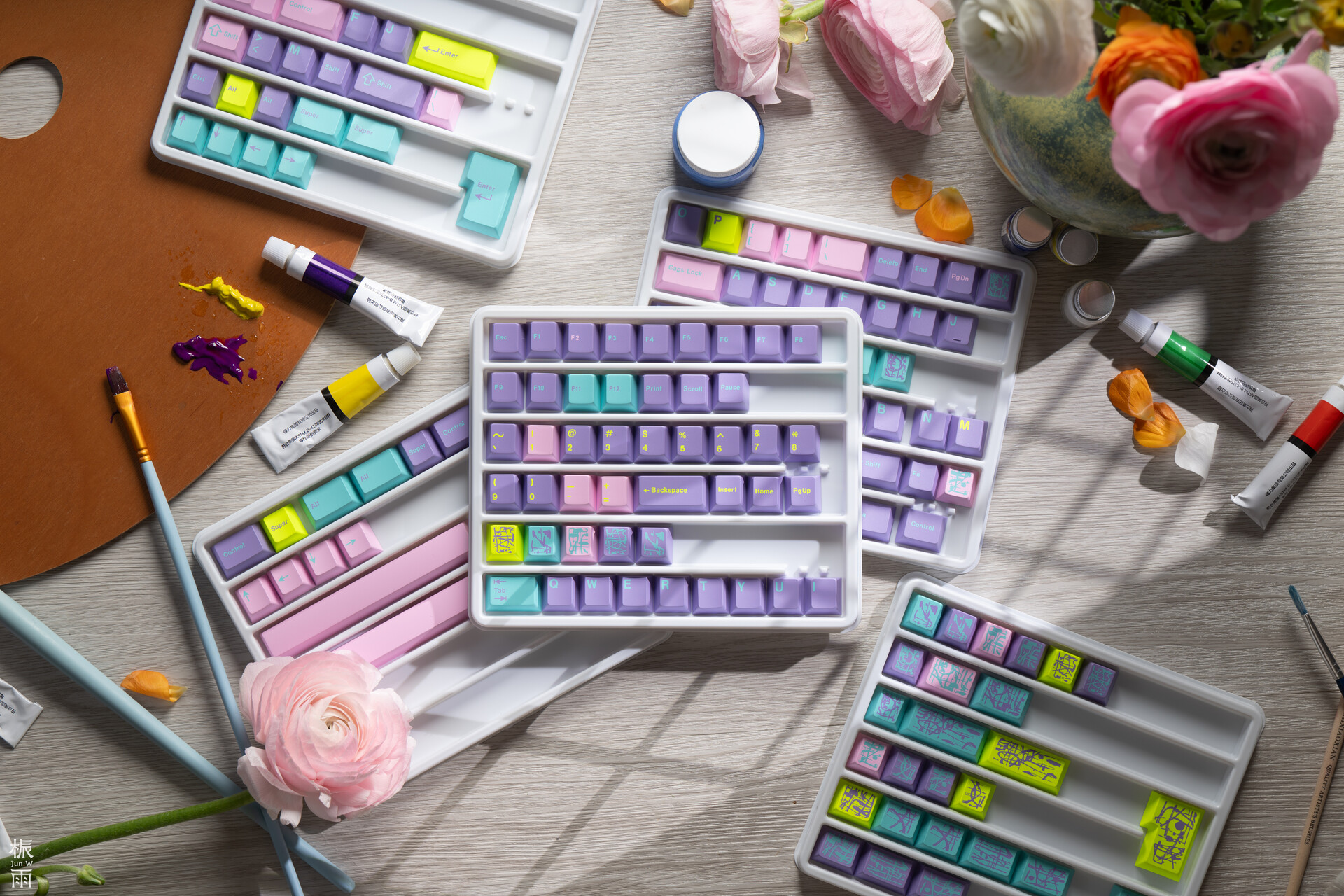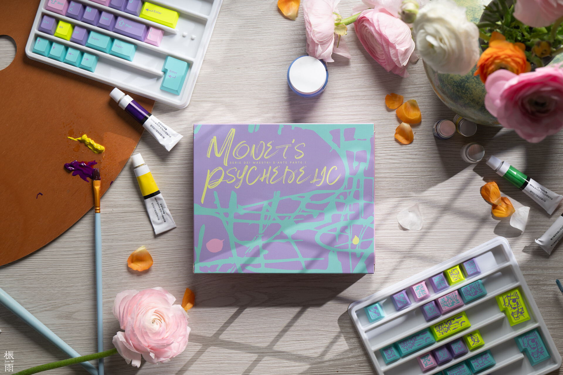 Keykobo Monet's Psychedelic biến chiếc bàn phím của bạn thành một tác phẩm nghệ thuật sống động, lấy cảm hứng từ những nét cọ biểu cảm và bảng màu đầy mộng mị của danh họa Monet. Bộ keycap gây ấn tượng mạnh với sự hòa quyện đầy mê hoặc giữa sắc tím oải hương, hồng mềm mại, xanh mòng két và điểm xuyết sắc xanh chanh rực rỡ. Sự phối hợp màu sắc này tạo nên một diện mạo táo bạo nhưng vẫn giữ được nét cân bằng tinh tế, mang hơi thở giao thoa giữa phong cách cổ điển quyến rũ và nét hiện đại, phá cách.