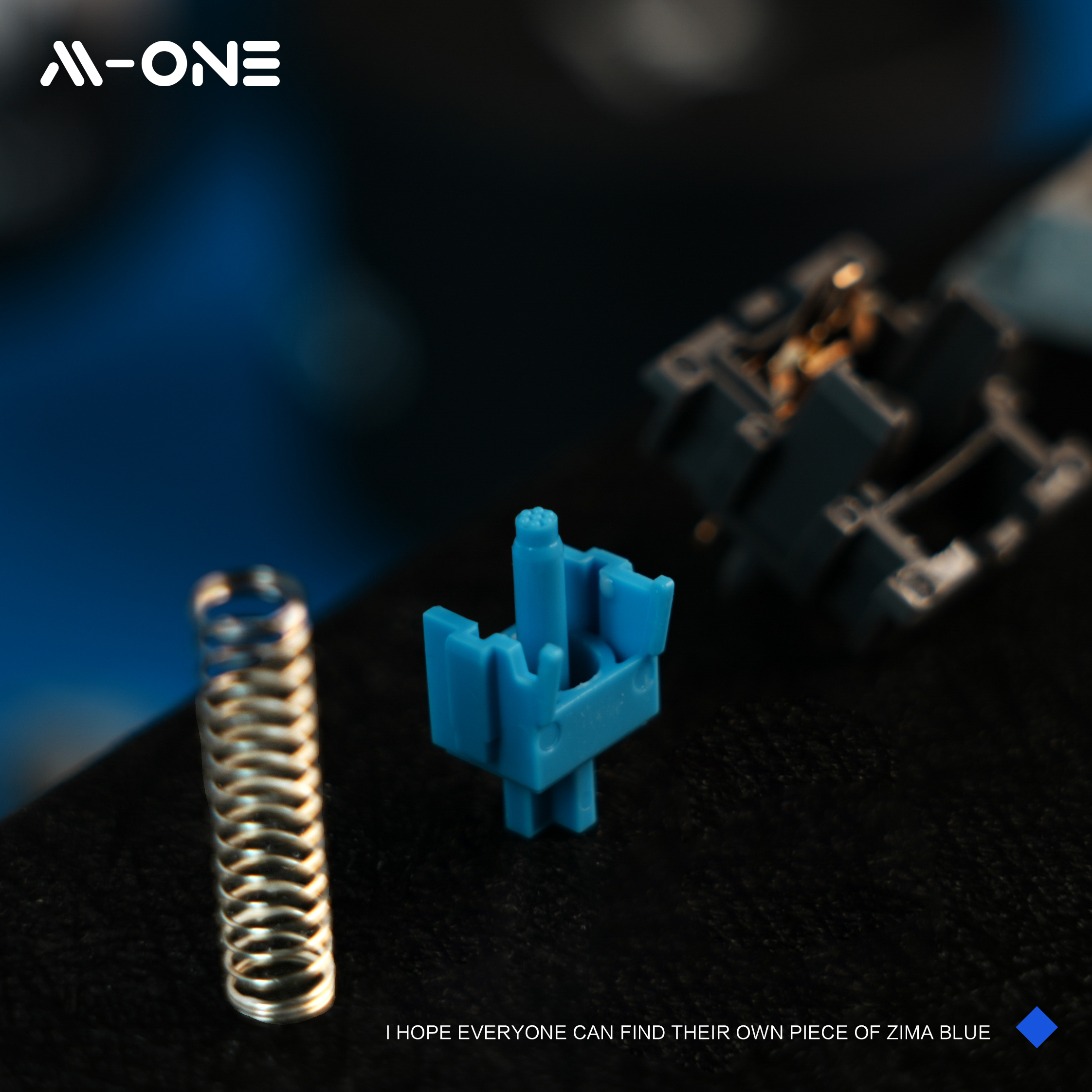M1 là một switch đặc biệt được tạo ra từ sự hợp tác giữa Miroooo Lab và Keygeek. M1 sử dụng bộ khuôn nhựa và lá đồng hoàn toàn mới, lò xo 17mm cũng được hãng tinh chỉnh riêng cho switch này. Điểm nhấn đặc biệt nhất nằm ở stem được thiết kế riêng: bề mặt đáy của trụ stem có 7 hình bán cầu siêu nhỏ. Chi tiết độc đáo này giúp âm thanh bottom out trở nên tròn trịa và đầm chắc hơn, trong khi vẫn giữ được chất âm "thocky" trầm ấm tổng thể. Tất cả những cải tiến này, kết hợp với lớp lube sẵn được áp dụng cẩn thận, giúp Keygeek M1 mang lại cảm giác gõ siêu mượt và âm thanh thỏa mãn.