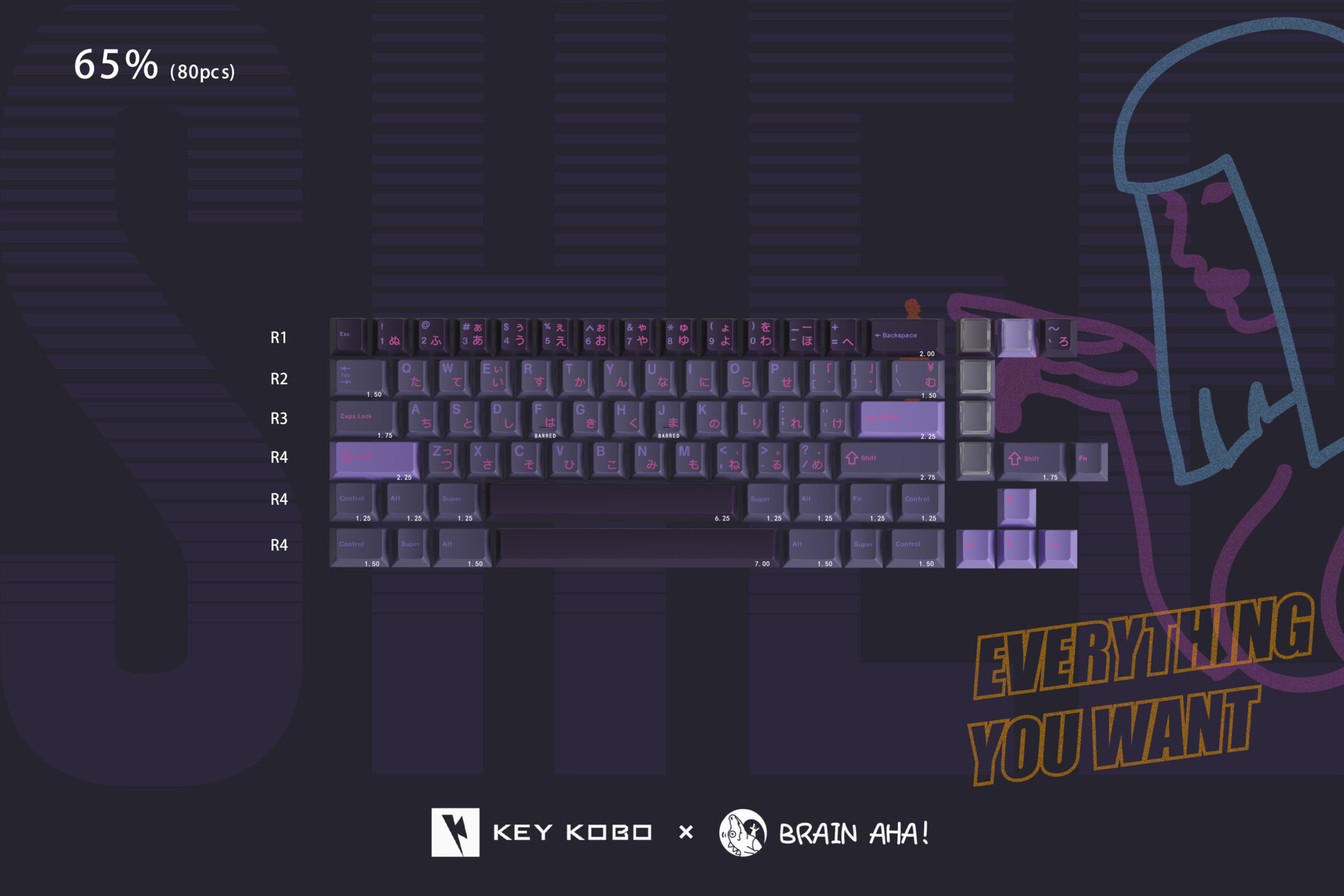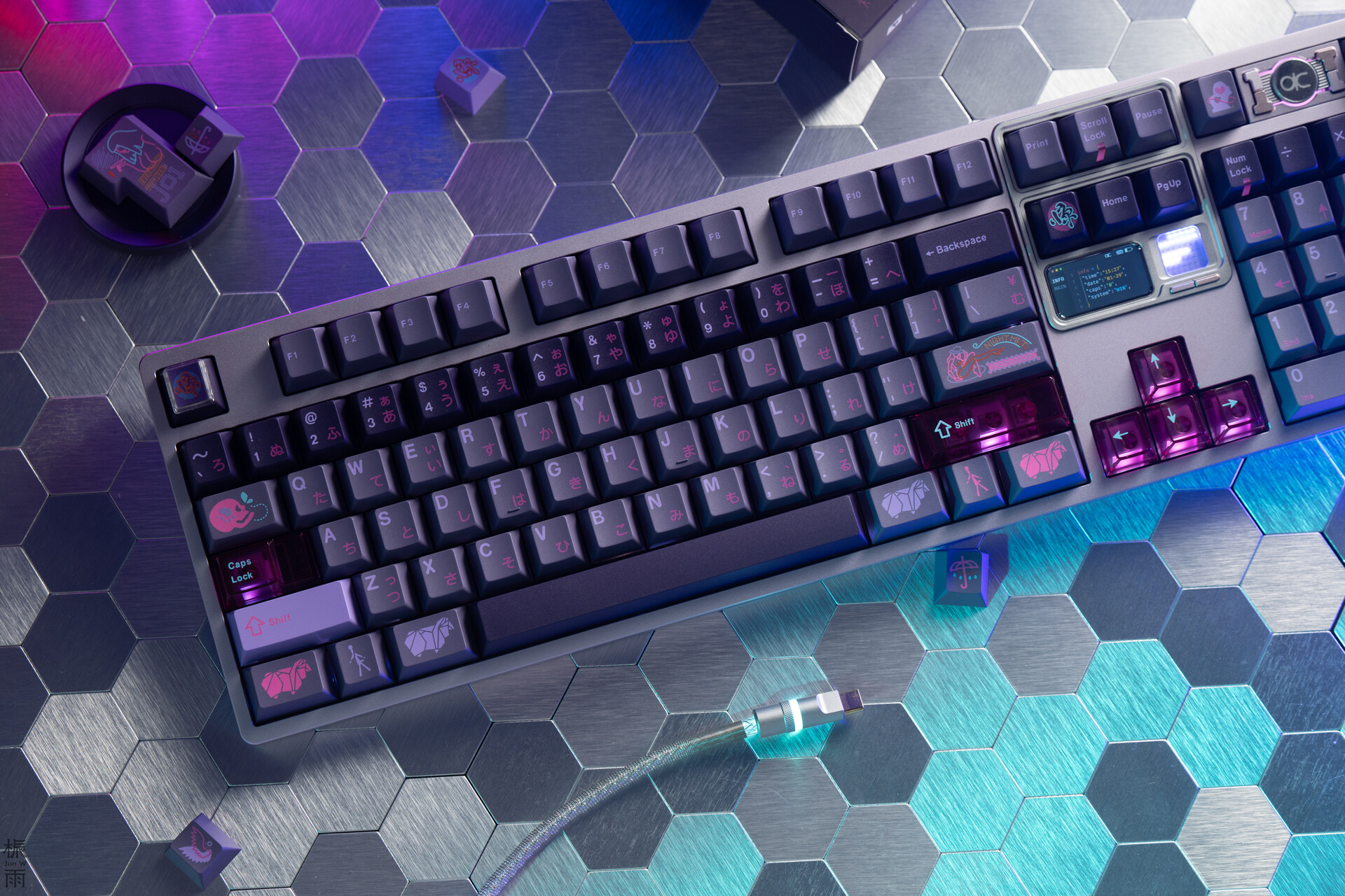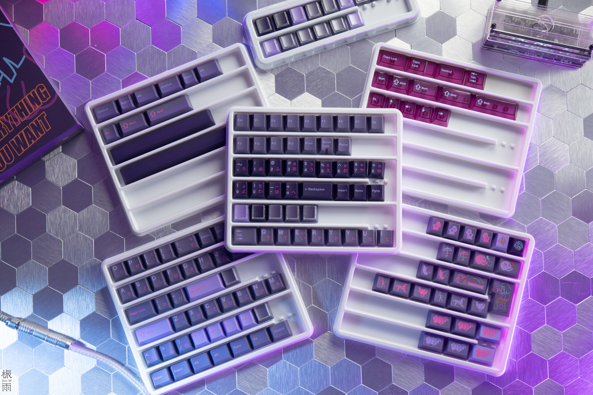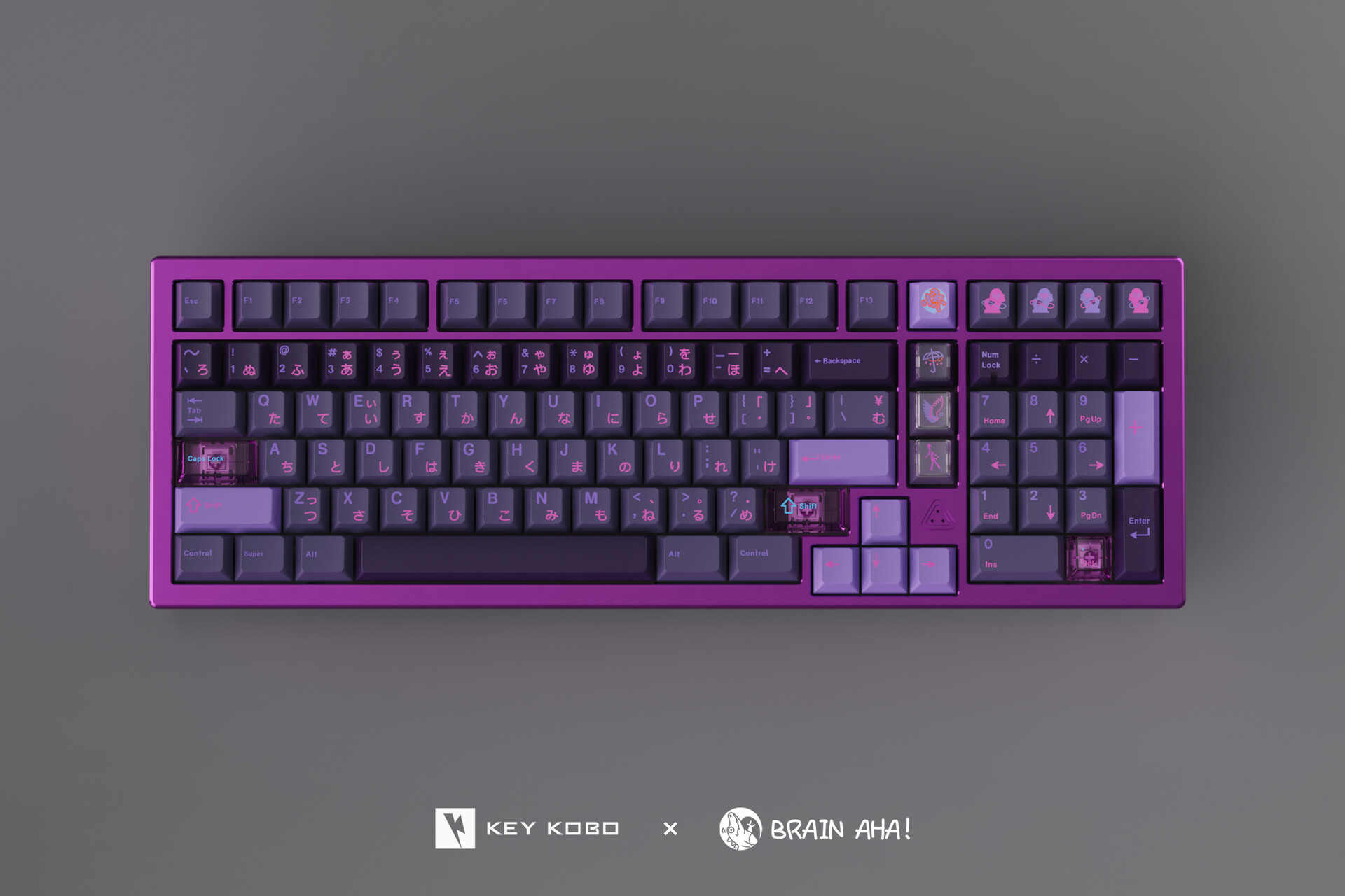 Lấy cảm hứng từ hình tượng những "cô nàng AI" trong thế giới Retro-futuristic, KeyKobo Shee mang đến một bản phối màu đầy mê hoặc. Sự kết hợp tinh tế giữa các dải màu tím và hồng gradient, hòa quyện cùng các nút PC xuyên thấu tương phản, tạo nên một diện mạo đầy chiều sâu và đậm chất nghệ thuật, gợi nhắc đến hình tượng nhân vật Joi đầy cảm xúc.
