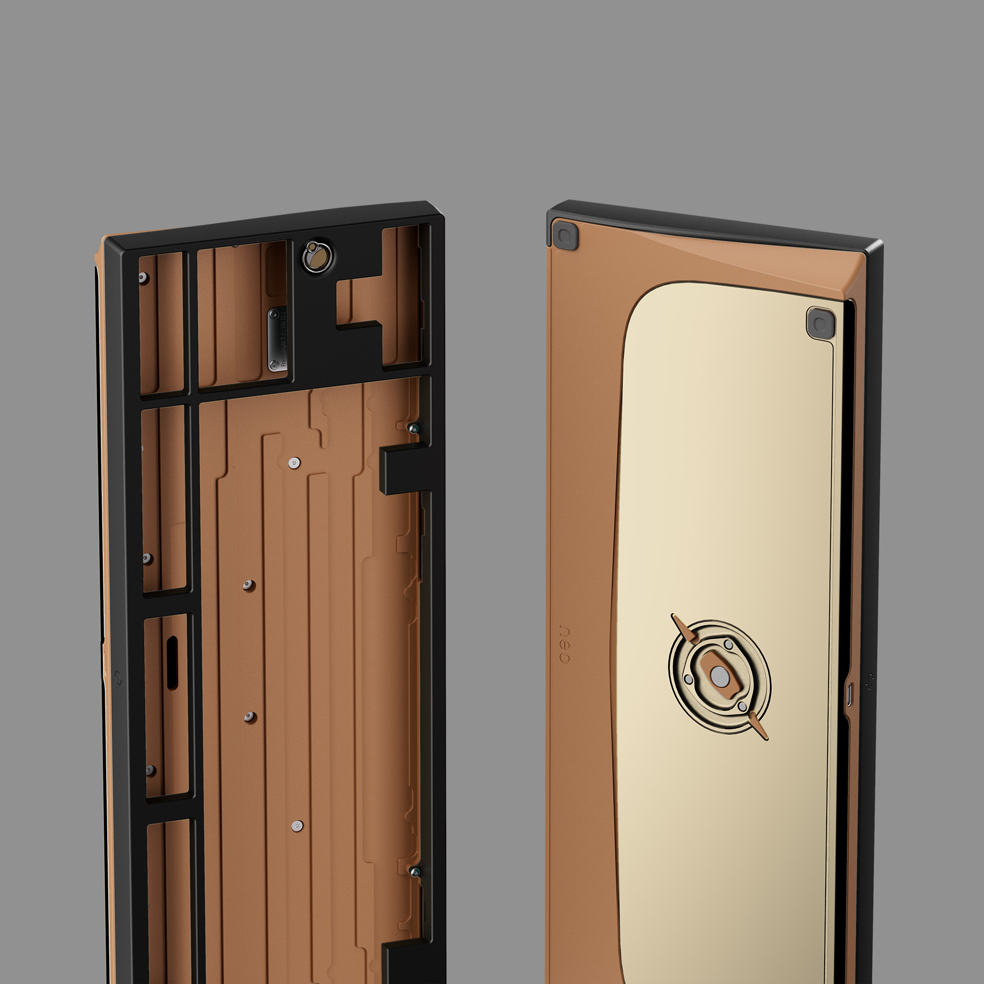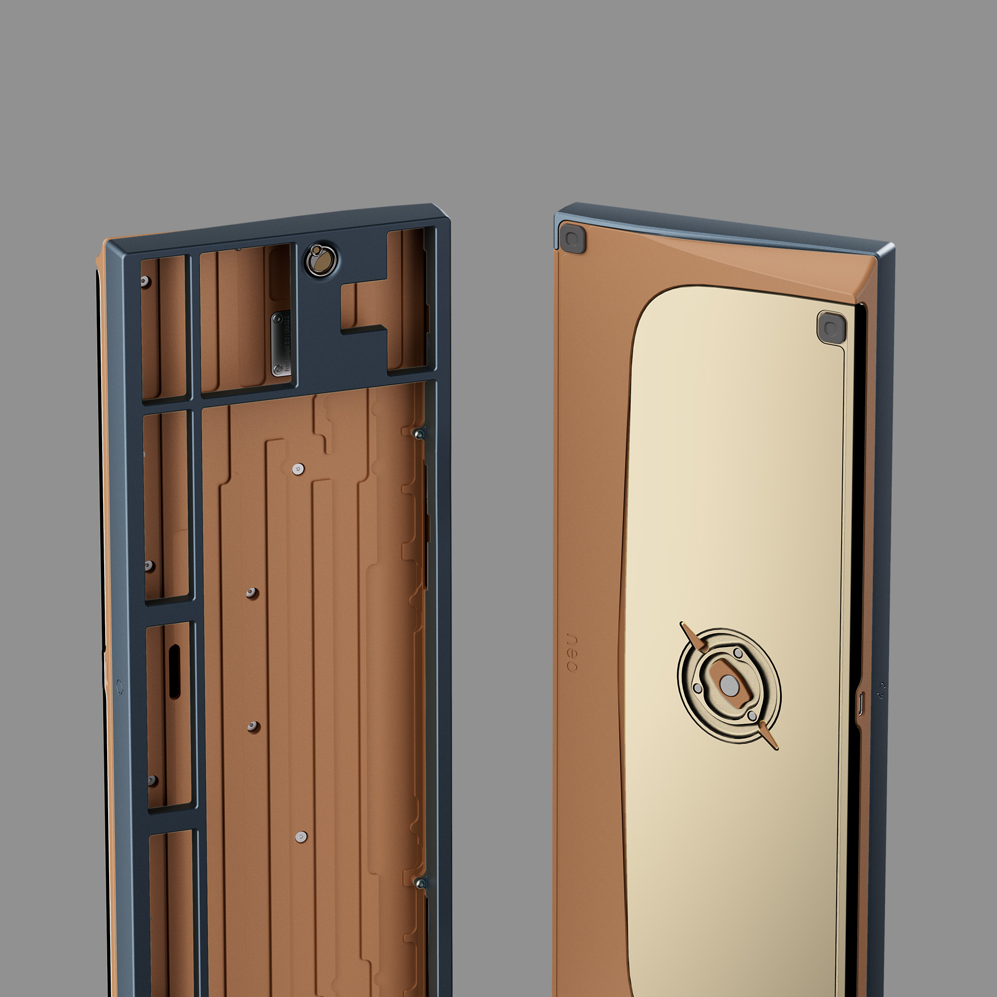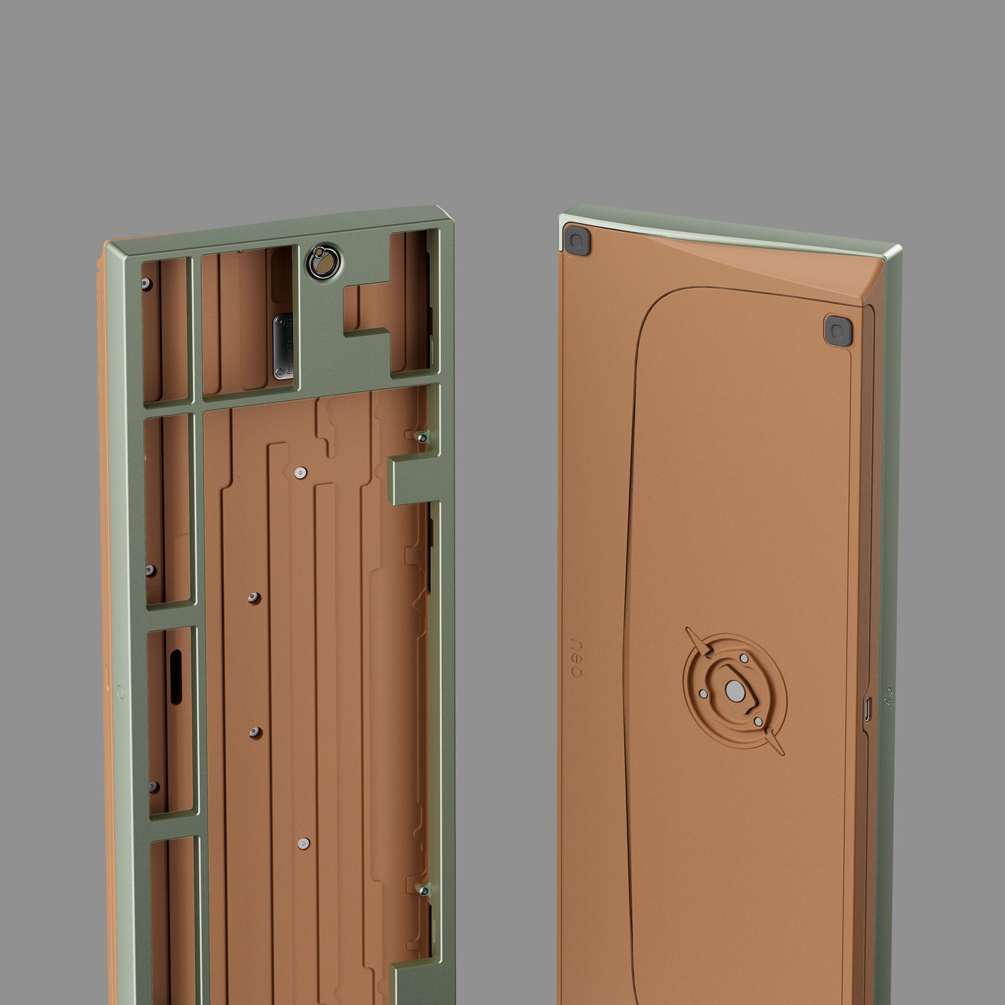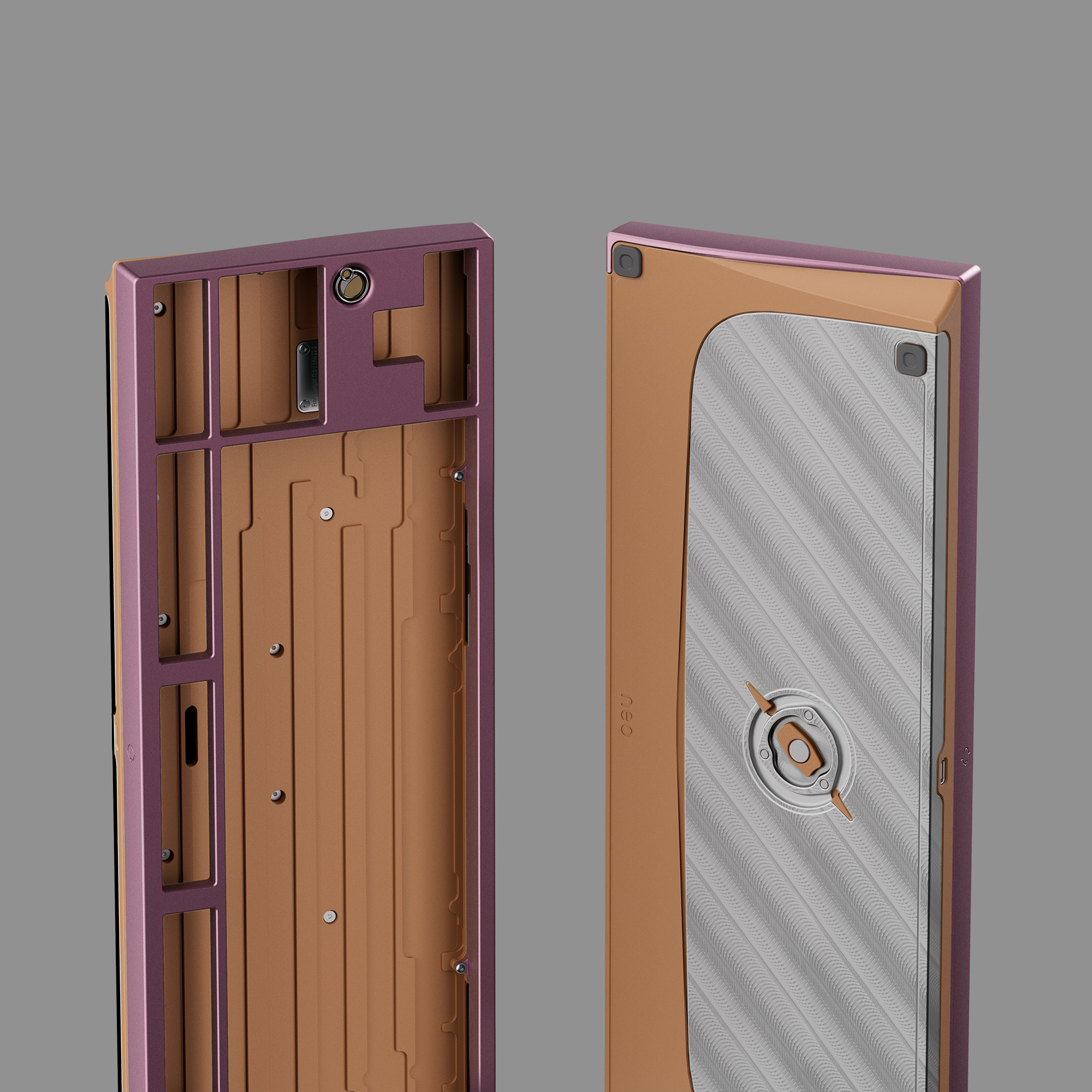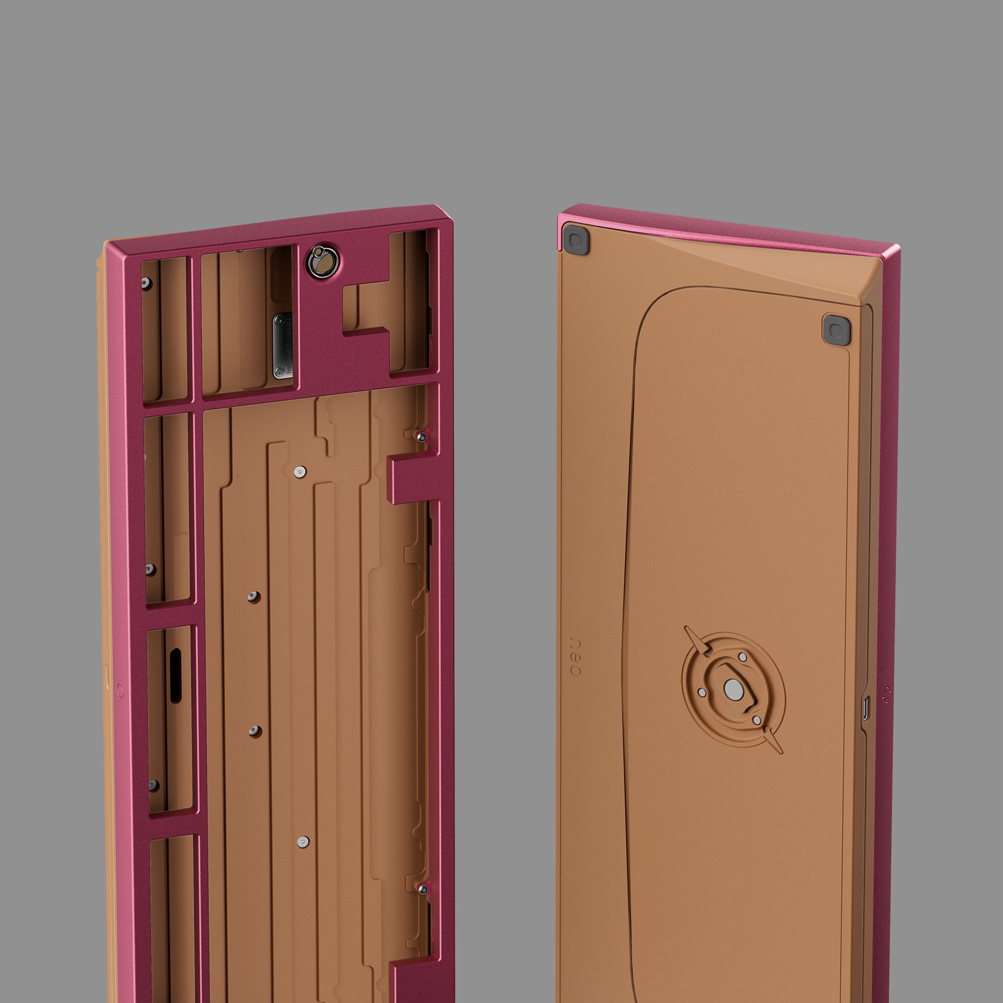 Phần bottom case của Neo80 Cu được làm từ đồng nguyên khối, mang lại vẻ ngoài nổi bật, cao cấp và trọng lượng cực kỳ đầm. Đây cũng là nền tảng để tạo nên âm thanh gõ phím sạch và chắc chắn.