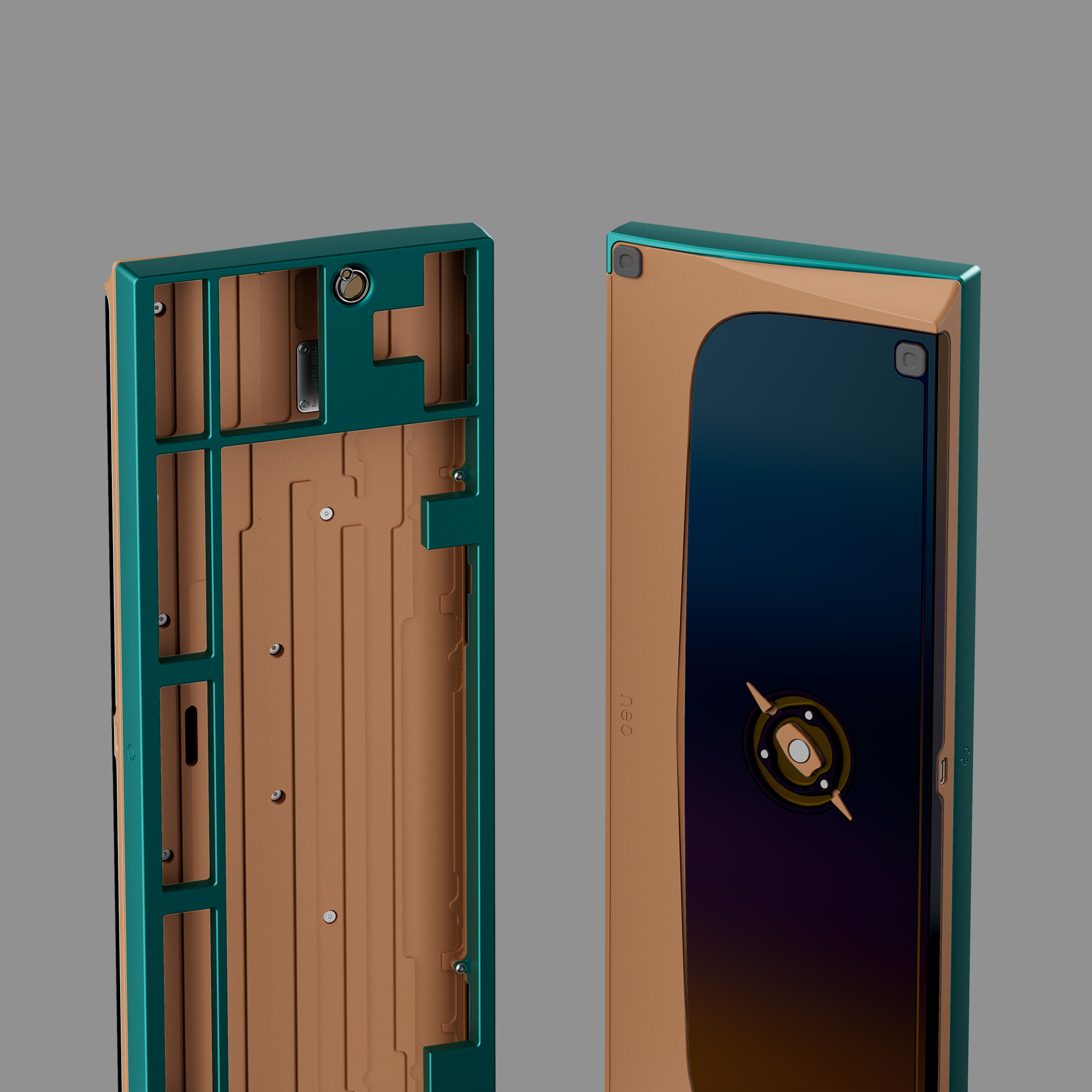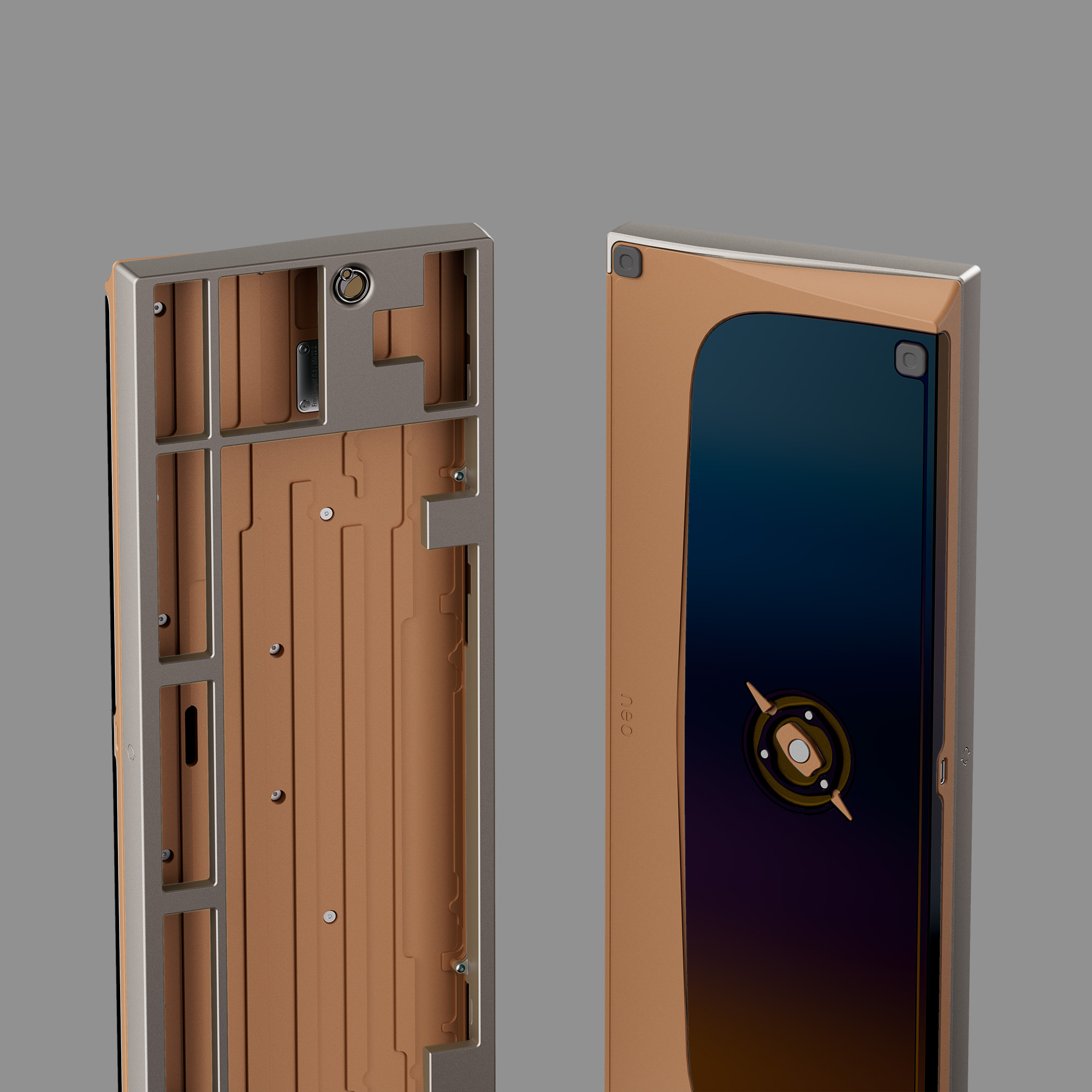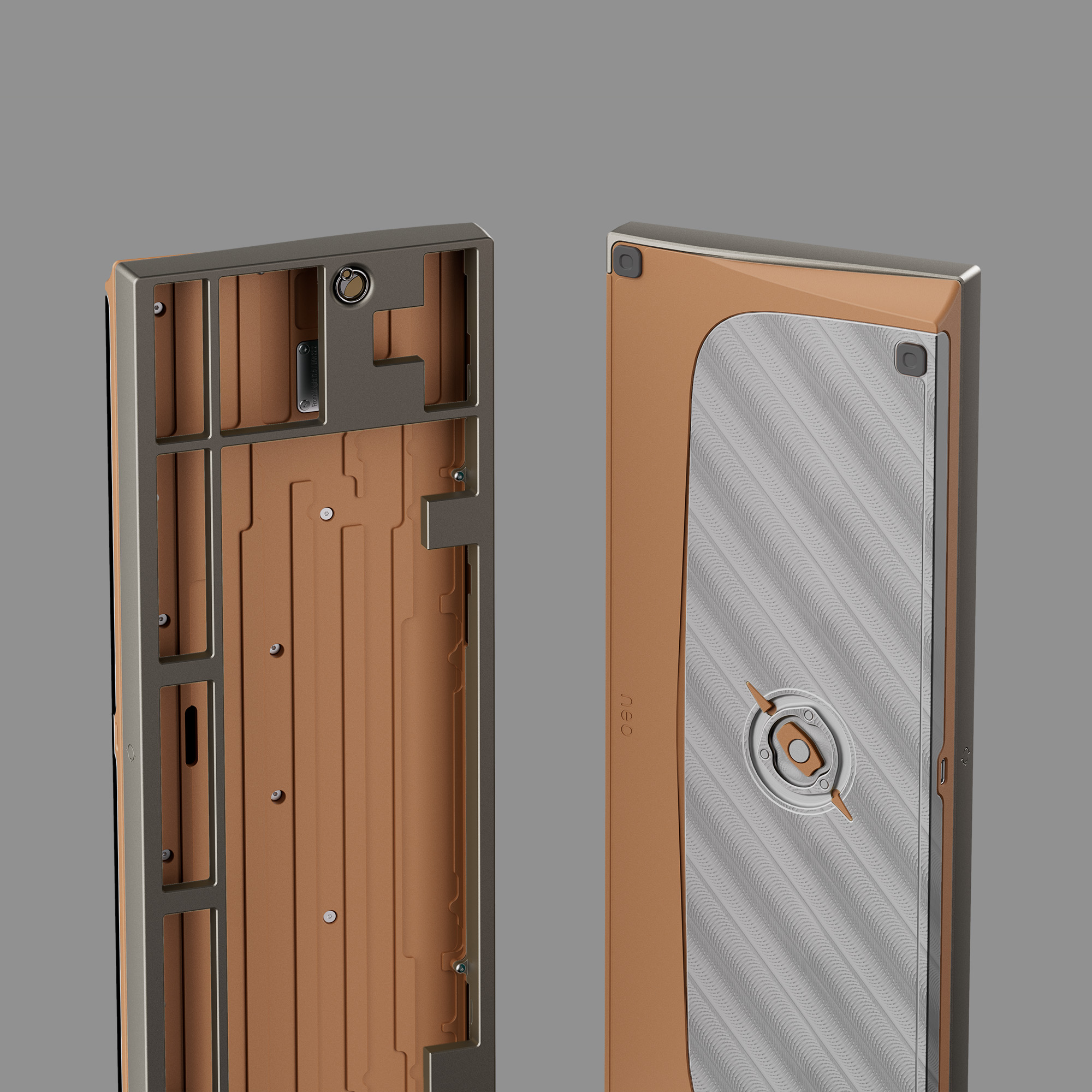 Lấy cảm hứng từ các thiên thể khổng lồ, phần top case của Neo80 Cu trang trí một "vòng tinh tú" nhiều lớp, mô phỏng vẻ rực rỡ của một hành tinh giữa bầu trời đêm. "Hành tinh" trung tâm được làm từ hợp kim nhôm với bề mặt được xử lý nhiều lớp, tạo cảm giác gồ ghề như bề mặt hành tinh thực thụ. Xung quanh là thép không gỉ được đánh bóng gương, mô phỏng vũ trụ sâu thẳm. Thiết kế này tạo hiệu ứng "hành tinh lơ lửng" tuyệt đẹp, mang lại chiều sâu cho chiếc bàn phím.