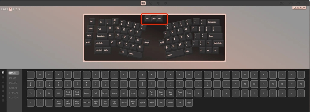 - Núm xoay: Mặc định núm dùng để chỉnh âm lượng: xoay để tăng/giảm và bấm để bật/tắt tiếng. Bạn cũng có thể gán chức năng khác cho núm trên phần mềm keymap