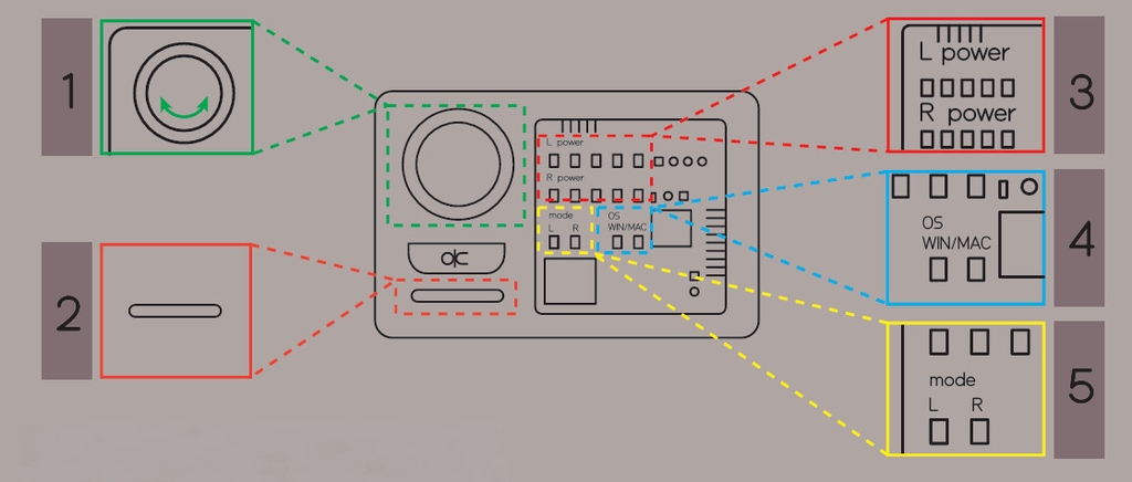 Nút bên phải dùng để bật/tắt các dải LED. Khi bấm sẽ chuyển lần lượt giữa 4 chế độ: