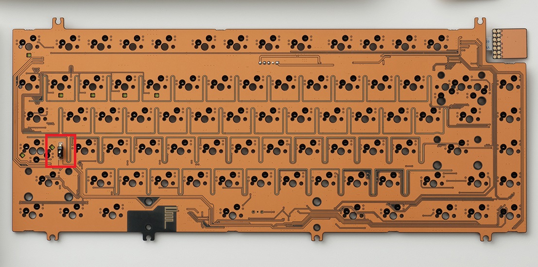 Vị trí công tắc bật pin trên PCB 3 mode (Gần vị trí caps lock)