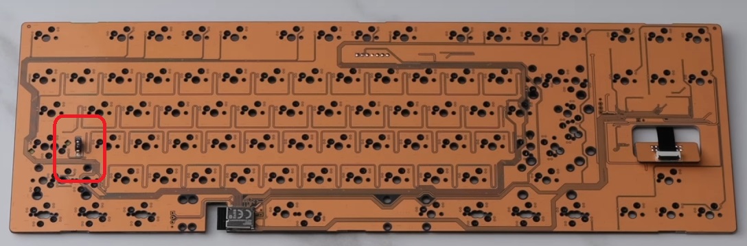 Vị trí công tắc bật pin trên PCB 3 mode (Gần vị trí caps lock)