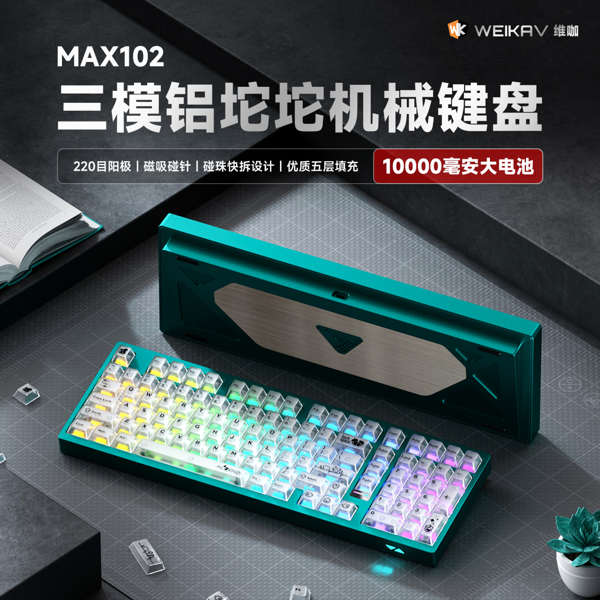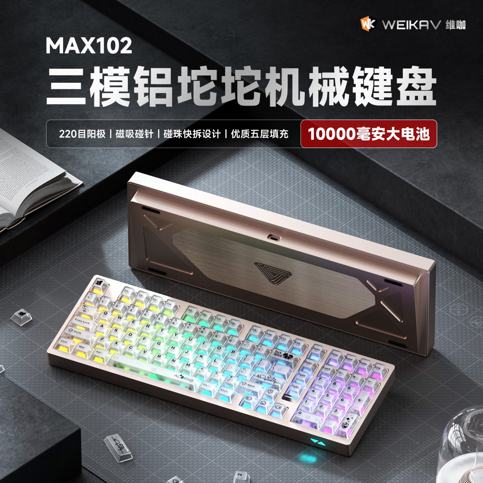 Max102 - Bàn phím nhôm CNC 3 mode, LED RGB, thiết kế đẹp mắt